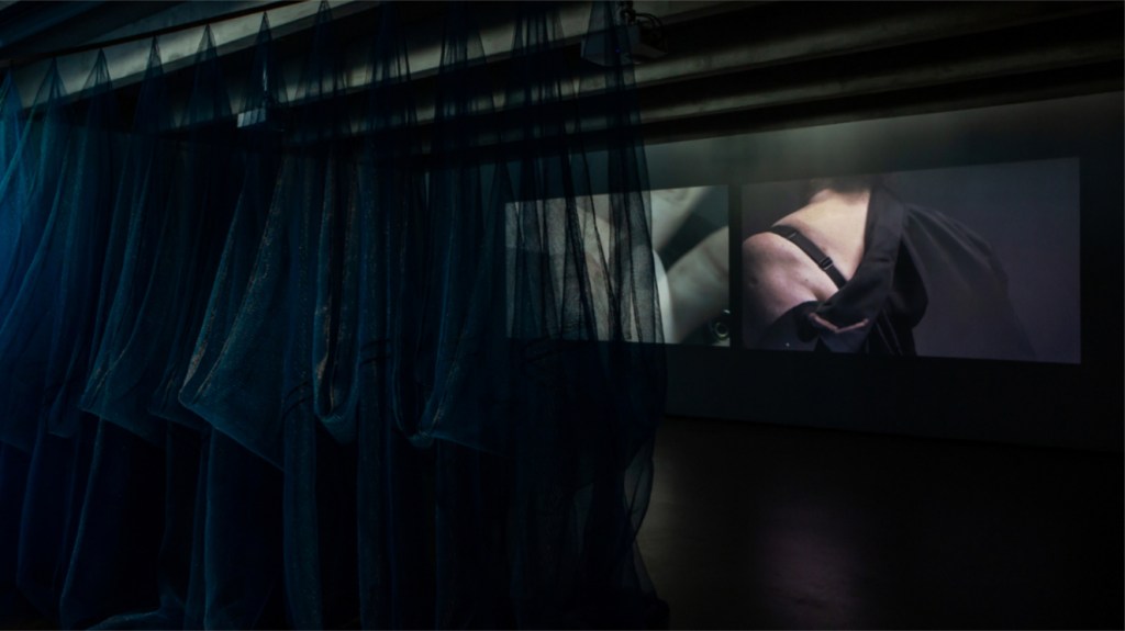 The artist worked with collaborator and architect Nick O’Neill from aaltspace architects to explore the binaries of architectural space and structures (which informed the performance installation and material). They were interested in concepts of left and right, masculine and feminine, safe and dangerous, open and closed, domestic and public, as well as the threshold spaces in between. I would argue that the films also evoke concepts of becoming and unbecoming through the fluctuations between the gestures and actions of early motherhood performed in the absence of the child. During their collaboration, Black-Daniels and O’Neill walked through the city together, discussing town planning, boundaries, accessibility and materials. The artist’s experience of trying to feed her child while in the urban environment is alluded to through the scaffolding netting drapery which divides the gallery space. Matthews (2019) argues, that“The practice of urban breastfeeding is wrapped up with power and visuality” and the act of feeding a child in spaces that have been “developed for the maintenance of particular kinds of bodies” (Lear, 2022) is an act of rebellion in itself. Šimić and Underwood-Lee argue that “The mother figure is one of rebellion too… Mothers can be conflicted and ambivalent, bored and frustrated” (2021, p. 139). Black-Daniels’ work holds some of this ambivalence, its discontent and restlessness, through the repetitive movement and unending action.